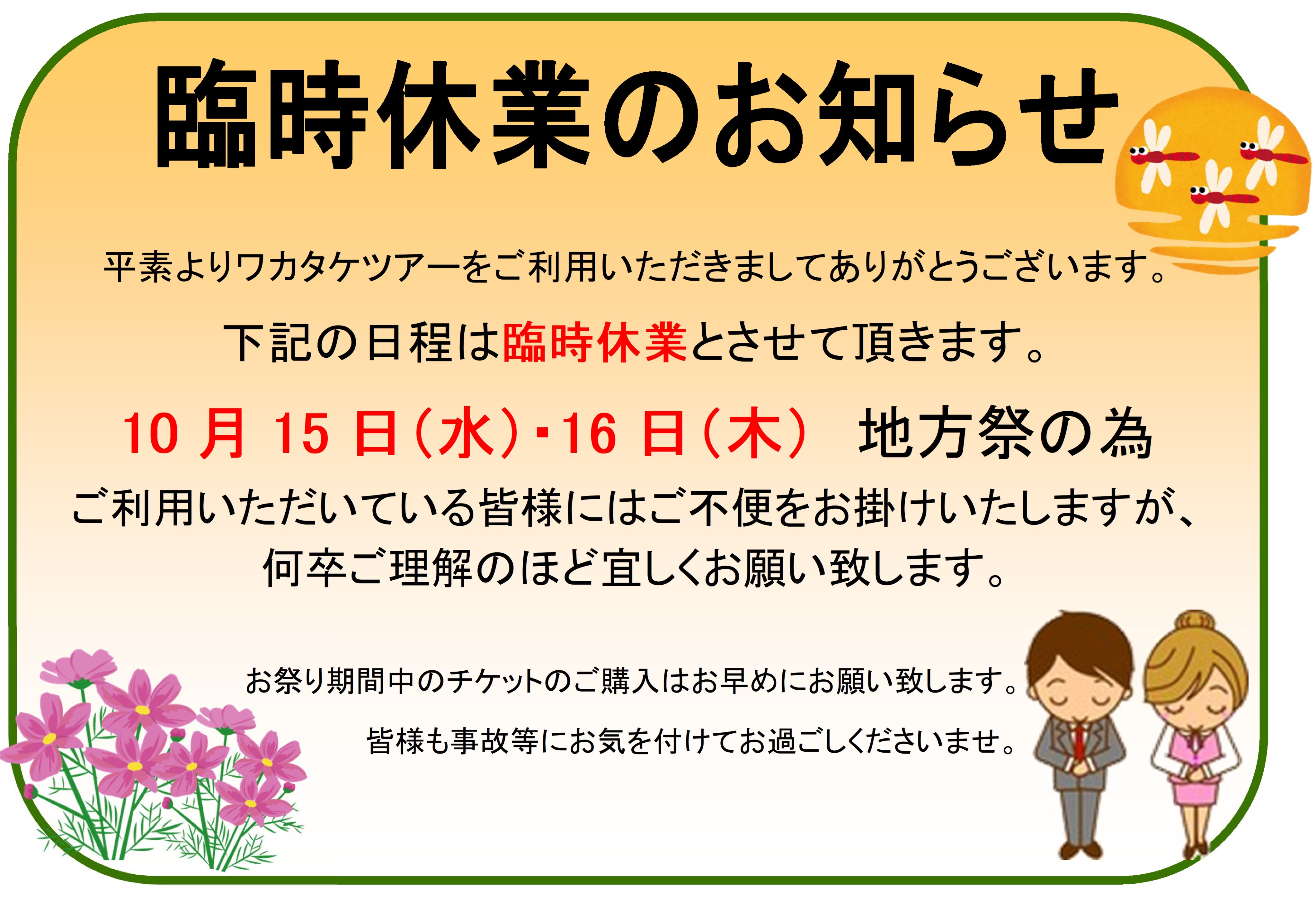 西条店より臨時休業のお知らせ